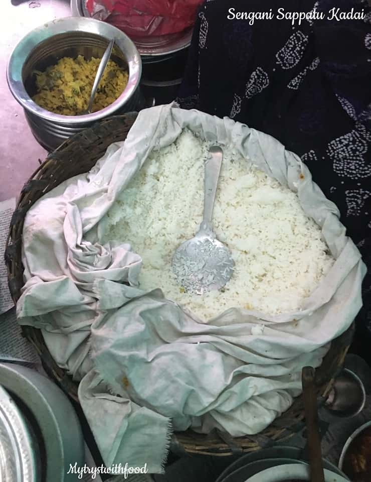 You can find many vendors who are selling “Koodai Soru” in this side of the town but Sengani Sappatu Kadai was the one that was highly recommended by locals here. So, this lady’s shop is situated in Thiruvalluvar Nagar part of Kasimedu and she’s a quiet known name here, for her food.