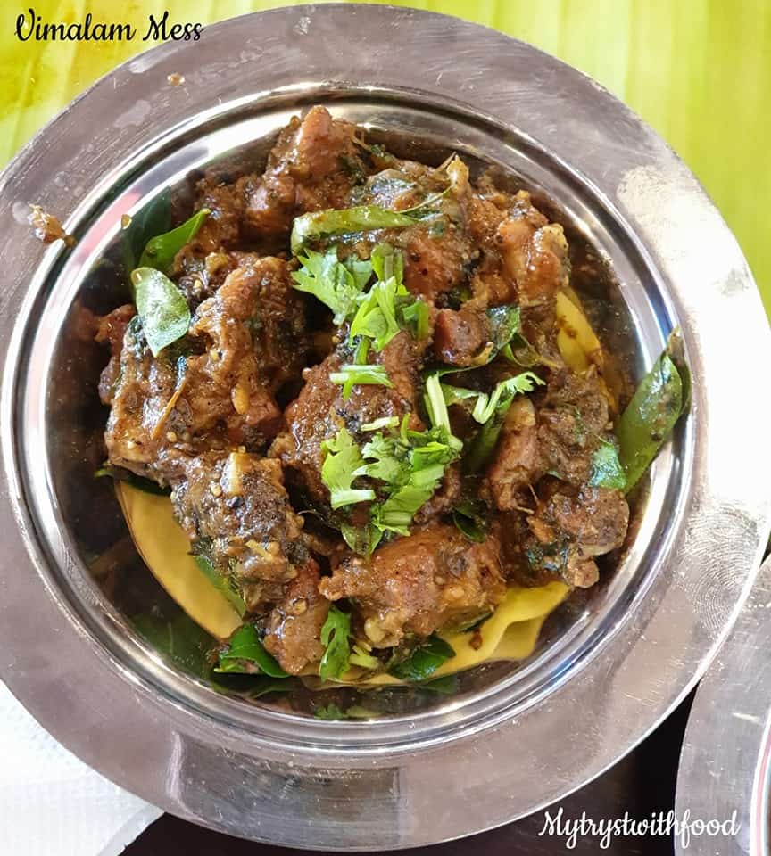 The spicy notes in their Attiraichi Milagu Sukka (₹200) was pretty good but the meat pieces weren’t good enough for a Sukka. I hardly got any meat in my serving of the Sukka. Karuvepillai Iral Varuval (₹190) was under cooked and was returned to the Kitchen. When it was served back, I had lost the appetite to continue eating it. Karuvepillai Iral Varuval was more like Mint Chutney Iral Pirattal than a Varuval. Vanjiram Fry (₹240) had a good Masala covering but it was raw and surely needed a minute or two more on the Tawa. Elaneer Payasam (₹110) and Paneer Soda (₹30) are the only things that I liked.