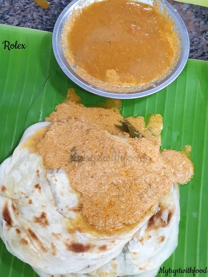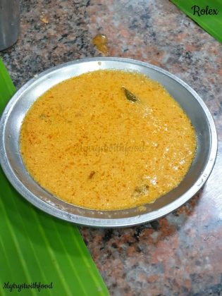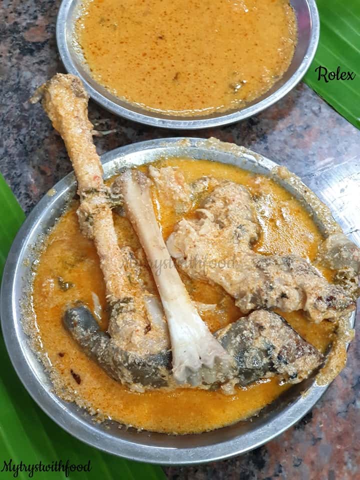 Started the meal with 2 Parottas (₹10/pc). It comes with 2 types of Complimentary Gravies – Prawn Gravy and Chicken Gravy. Prawn Gravy was slightly on the sweeter side so I preferred the Chicken Gravy for my Parottas. Eventhough there were complimentary Salna given, I ended up ordering the Aatukal Paaya (Lamb Trotters) Gravy (₹140). Falling-off-the-bones type Paaya in it’s Coconut based gravy was superb in taste.