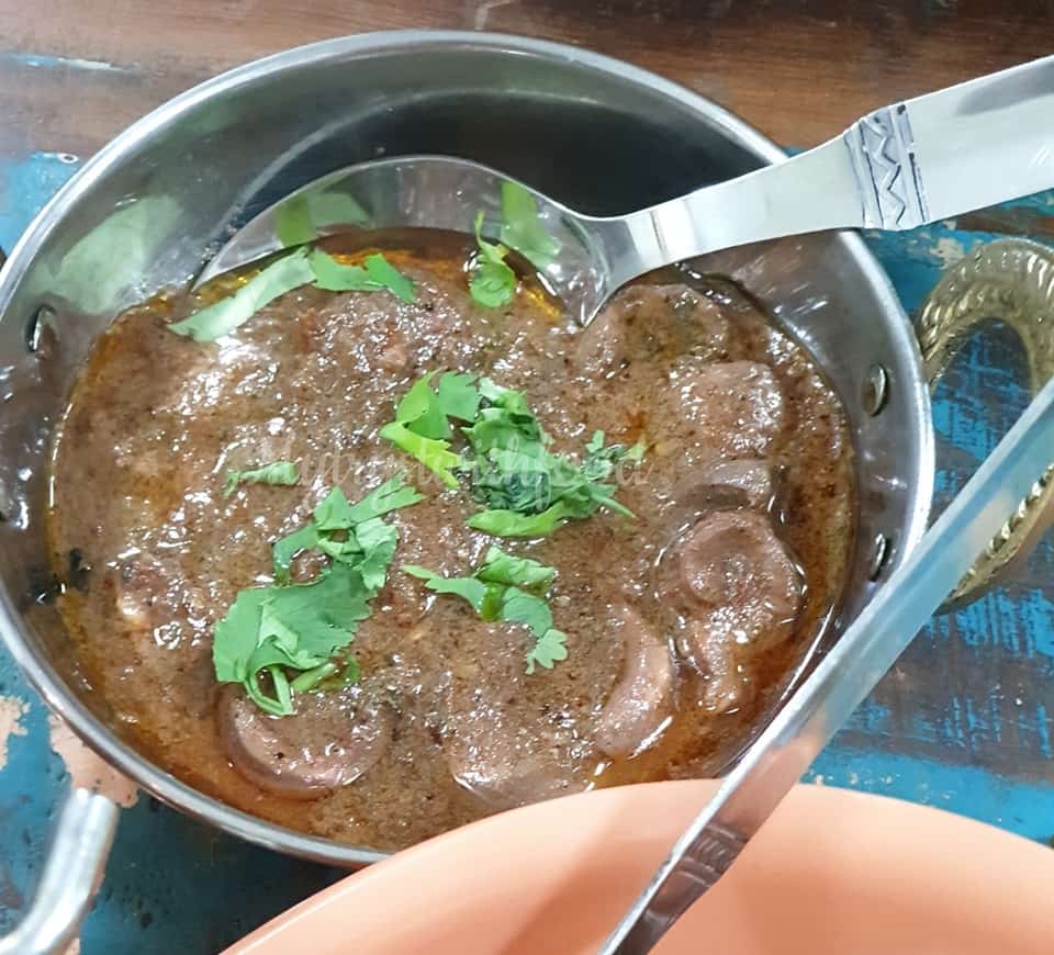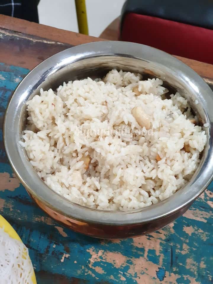 At Saifu’s, I had my dose of Chawal Ka Roti (Roughly translates to Chapati made of Rice Flour) with their fall-off-the-bone Paaya Gravy (₹170). Talking about Paaya and how can one skip ordering it’s permanent partner Idiyappam (₹30 for 4 pcs)? The Mutton Korma (₹170) which has succulent Mutton Pieces and Potatoes in it is a good accompaniment, too. But, I would always prefer it with Ghee Rice. Mutton Biryani (₹240) is an inevitable order here. But, I’m yet to figure out if it’s the Muzaffar Sweet that’s my motivation to order this or the Chicken Lal Mirch (₹140) whose fiery gravy is my favorite accompaniment with the Biryani, itself.
