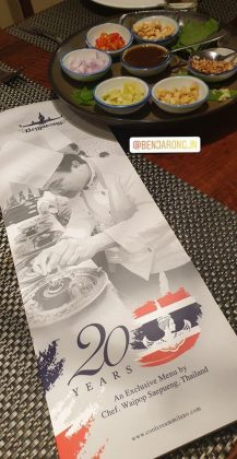 To celebrate the 20 years achievement, Benjarong is running a special menu curated by the visiting Chef. Waipop Saepueng. Chef Waipop is closely associated with the Thai Consulate and represents his country’s cuisine in different parts of the world as a visiting chef. His food speaks for him and his ideas of presenting Thai food by incorporating new ingredients is just brilliant.