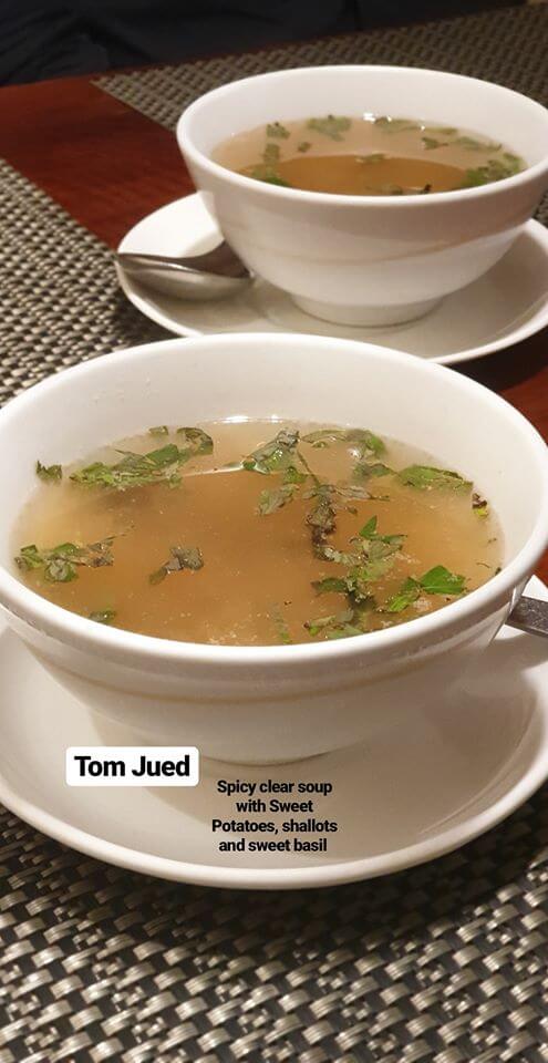 6. Tom Jued – Spicy Clear Soup with Sweet Potatoes, Shallots and Sweet Basil. This was a revelation for me because the broth of the soup had Tamarind in it. And, after what the Chef mentioned, I realised how close this soup is to our own Rasam.