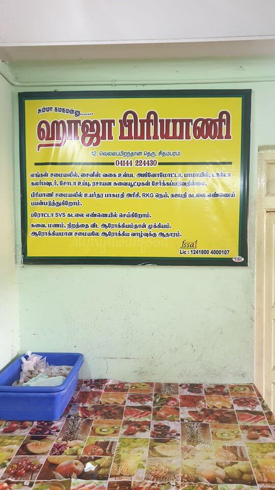 Having hailed from a nearby town from Chidambaram, my family and I emotionally connect with this town. I’ve exhausted all big names from Chidambaram, in the past few years. Looking for a new option to lunch this time, I remembered this name (mentioned by someone in my older post of Kamala Vilas) and a friend from Chidambaram also gave a green to this place. Landed a little past 3 PM for lunch when Biryani was almost getting over.