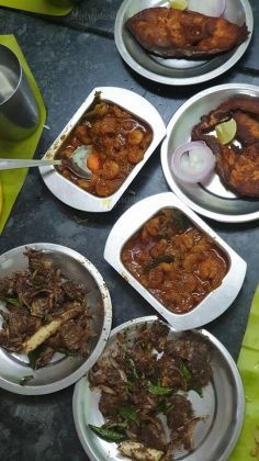 Coming to the sides, Mutton Pepper (₹150) outdid all other sides. I’m floored by it, completely. Runner up would be their Eraa Thokku (₹135). Perfectly cooked soft textured Prawns in a tangy tomato masala was soooooo yummy. Drool!! Chicken 65 (₹70) was excellent. Vanjiram Meen Varuval (₹120) was good. No complaints! Eeral Fry (₹150) looked good but I didn’t taste it as I’m not a fan of such spare parts.