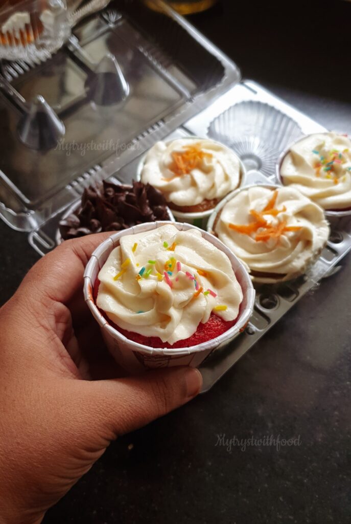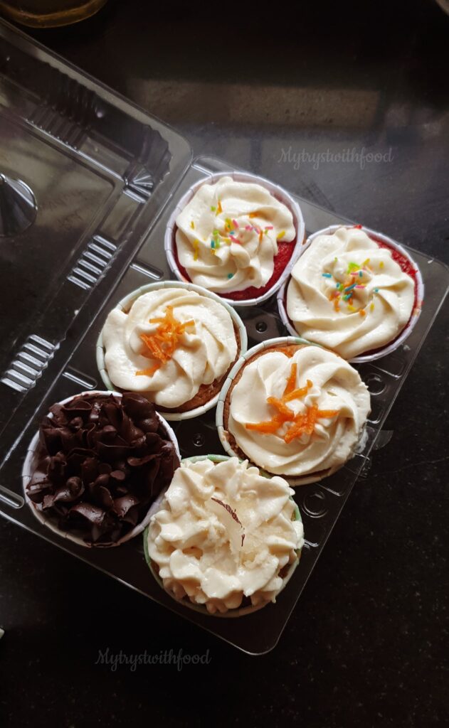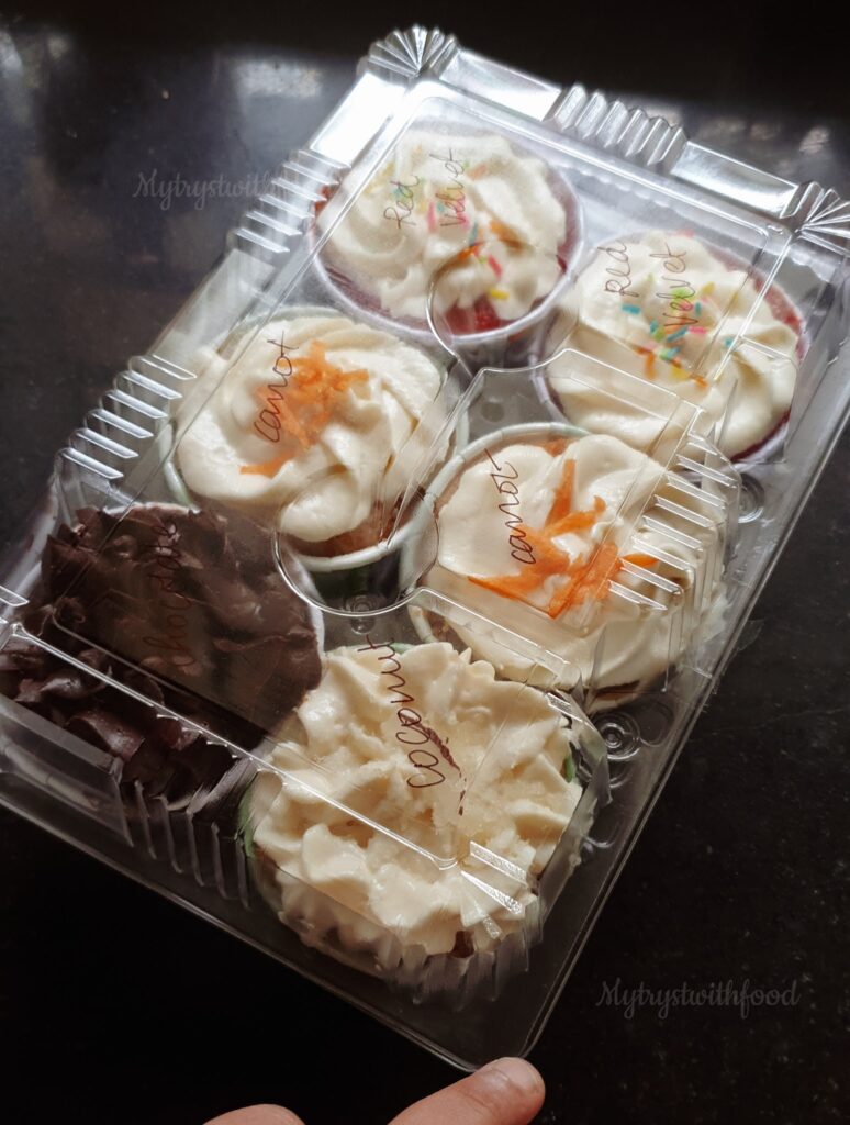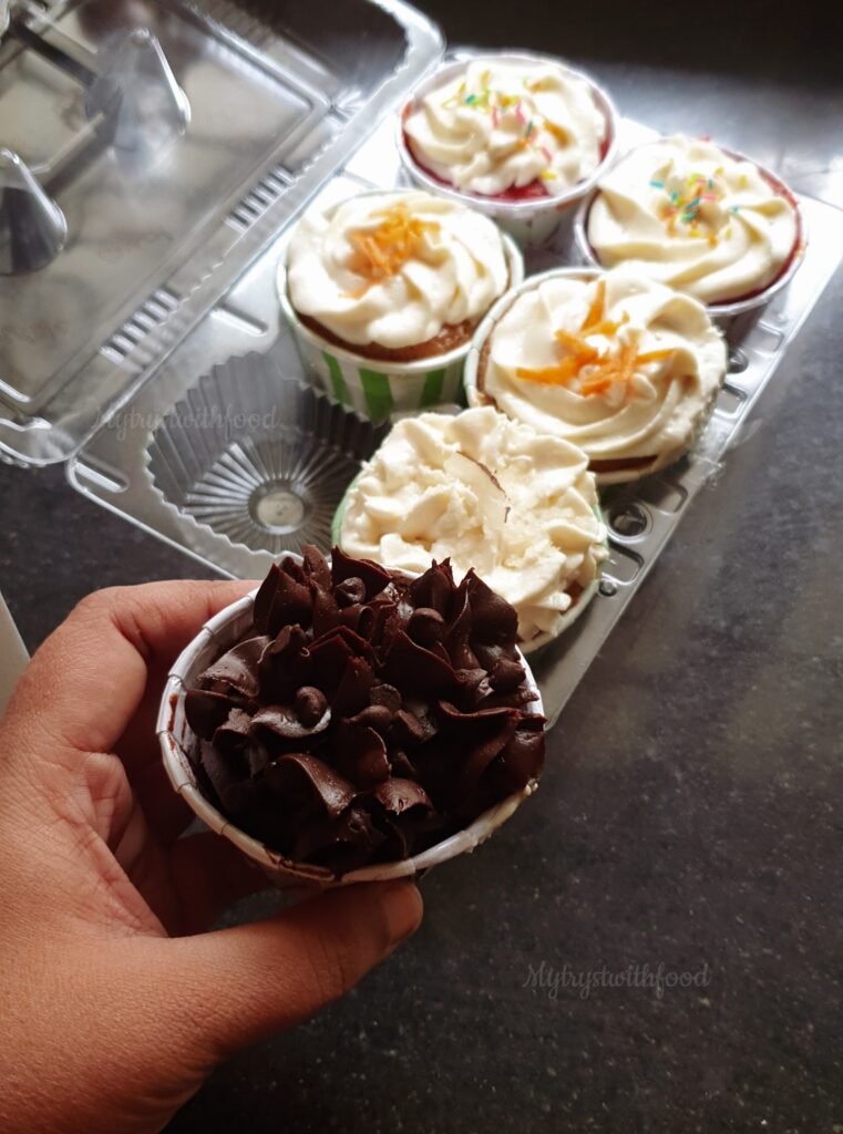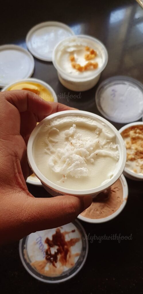 Not just Ice Cream, Rekha Jai, the owner is an ace in Pastries, too. She used to run a full menu but now due to restrictions, the menu is limited. So, I made sure I checked with what’s available and placed my order. The Cupcakes (₹45/Cupcake) were heavenly. Not too sweet not too bland, just the way I like it. I really like the fact that she likes to give variety in her offerings.