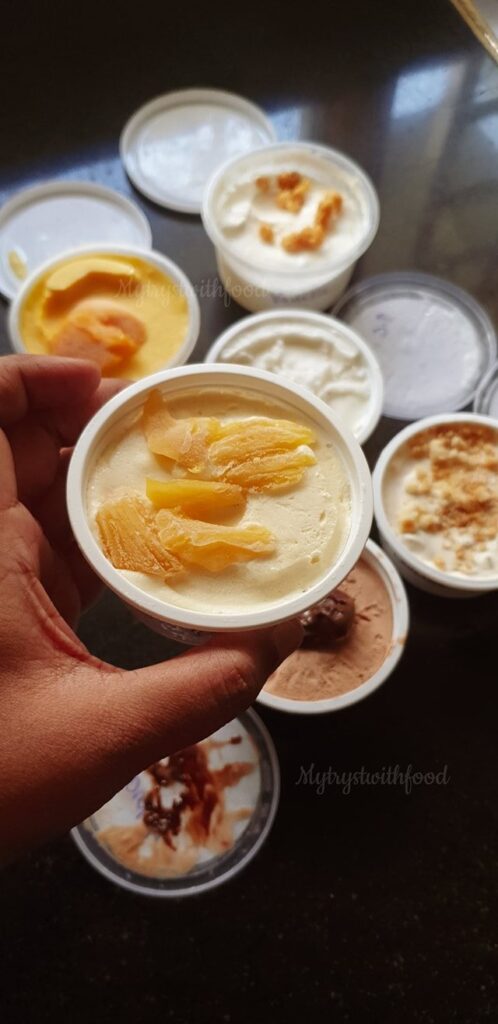 Someone had DMed me asking about any place that sells takeaway Ice Creams is what made me ponder about such home made Ice Cream options. That’s when True Glace clicked to me. The owner of True Glace has been treating her customers to home made Ice Creams for years, now. It’s so nice to see how thoughtfully and nicely she packs them. For example, her Jackfruit Ice Cream comes topped with bits of Jackfruit on it. Taste wise, Top-Notch. Ice Cream is priced at ₹70/cup.