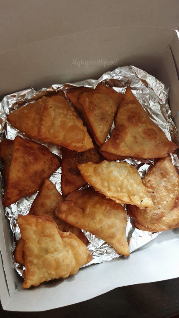 Placed my order for her Chicken Samosas (₹45/pc), too. The whiff of Ajwain (Carom seeds) as soon as I opened the parcel made me love them immediately. Anyone who adds Ajwain to their Samosa dough has my deep respect. Filling was perfect. Loved it, totally.