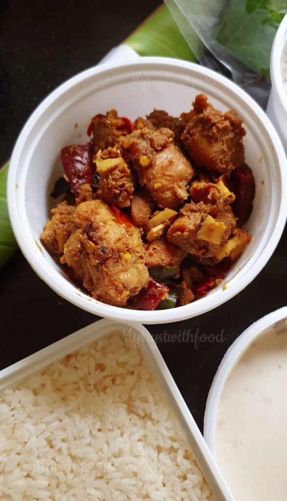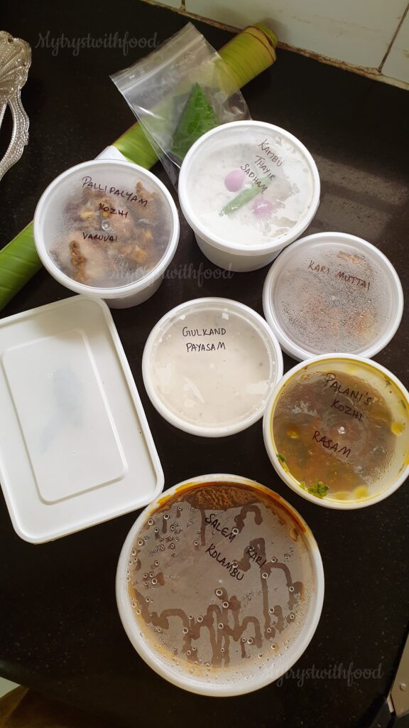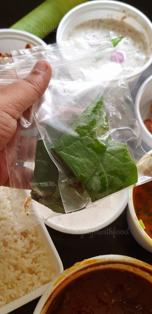 Packaging was perfect with nil spillage. I liked the thought of including Vazhai Illais and Beedas along with the order. Payment is through Online. Takeaway or pickup through online delivery aggregators.