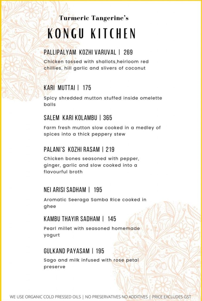The point that is most important here – be it from any kitchen – is “FOOD”. As long as one gets served safe, hygienic and at the same time some amazing food, there’s nothing to complain about. So, what caught my eye first with “Turmeric Tangerine” is their name and second would be their Menu which is designed around Kongu region.