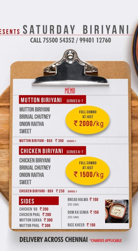 Paid around ₹900 through Gpay. They are based out of OMR. Attaching menu in pictures for reference.