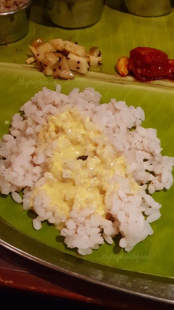 Priced at ₹399 (all inclusive) this Sadhya shook me up a bit. Everything on the plate adorned by a Banana leaf, was divine. Maybe it’s because of the occasion that I’m relating this experience to the adjective “Divine”. You’ll have to believe me when I say I finished 3 serving cups of the Pineapple Pachadi, all by myself. I’m not exaggerating, here.