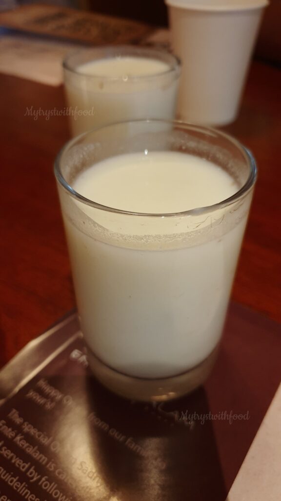 All the elements of a Sadhya were quiet intact in the spread. The items in the spread are explained in the pictures. The menu on the day I went was – Moru, Rice, Sambar, Rasam, Kachiya Moru, Avial, Cabbage Thoran, Pineapple Pachadi, Beetroot Kichadi, Nei Parippu, Yellow Pumkin Errissery, White Pumpkin Olan, Kalan, Curd, Lemon Pickle, Mango Pickle, Inji Puli, Inji Thayir, Pazham, Pappadam and the Kondattams. Sweet dishes were – Ada Pradhaman, Paal Ada payasam, Jackfruit Pradhaman, Parippu Payasam. It will be a rotational menu. Chef Shibu who is behind the scenes this year for the Sadhya has got every dish spot-on.