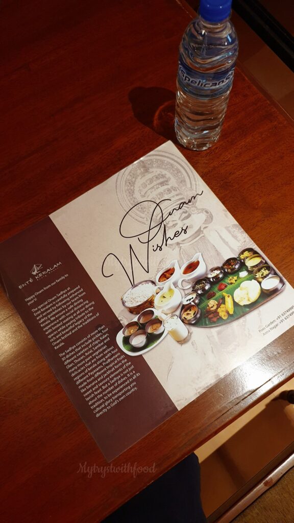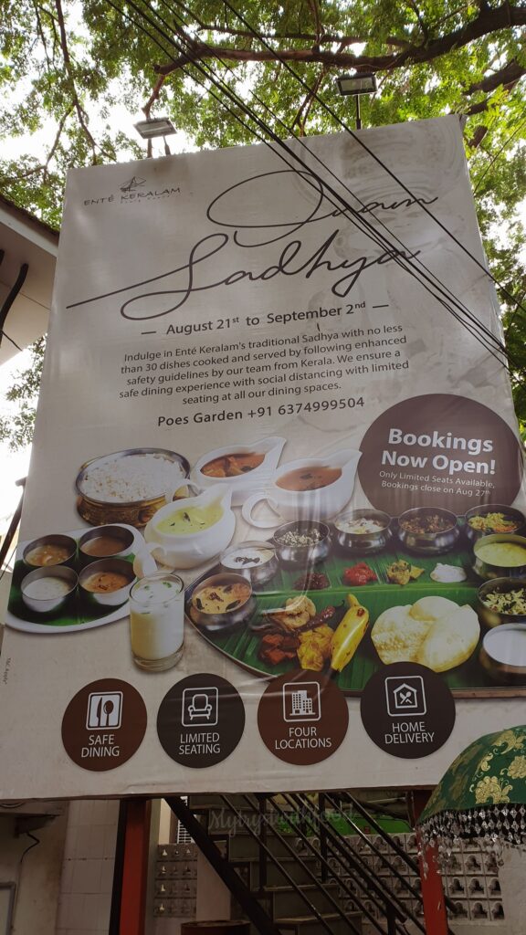Early bird gets the worm… I do know that I’m too early for the Onam Sadhya game this year. But, it was my shrewd mind that convinced me to try the Sadhya before it starts getting crowded. Also, Sadhya is one thing or for that matter all Meals (Banana leaf ones) are best devoured in Dine- in rather than a take away in my personal opinion. And, of course I’m not going to ever get a homemade Sadhya as I know no one who will treat me to one.So, ended up checking the “Ente Keralam” Sadhya which has been rolled out to public, already.