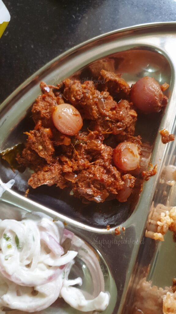 Chinna Arisi Mutton Biryani (₹305) wasn’t the normal Chennai style. I personally don’t associate Small Grain to Chennai Style Biryani but isn’t Chennai all about adopting styles? And, this Chef Style Biryani tasted very good when the Mutton Chunks with its Masala was mixed through with the flavorful Small Grained Rice and consumed together. Very different and tasty, indeed.