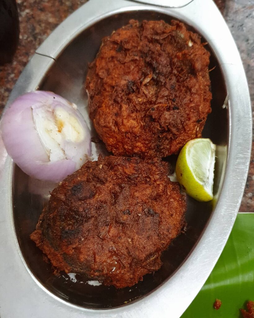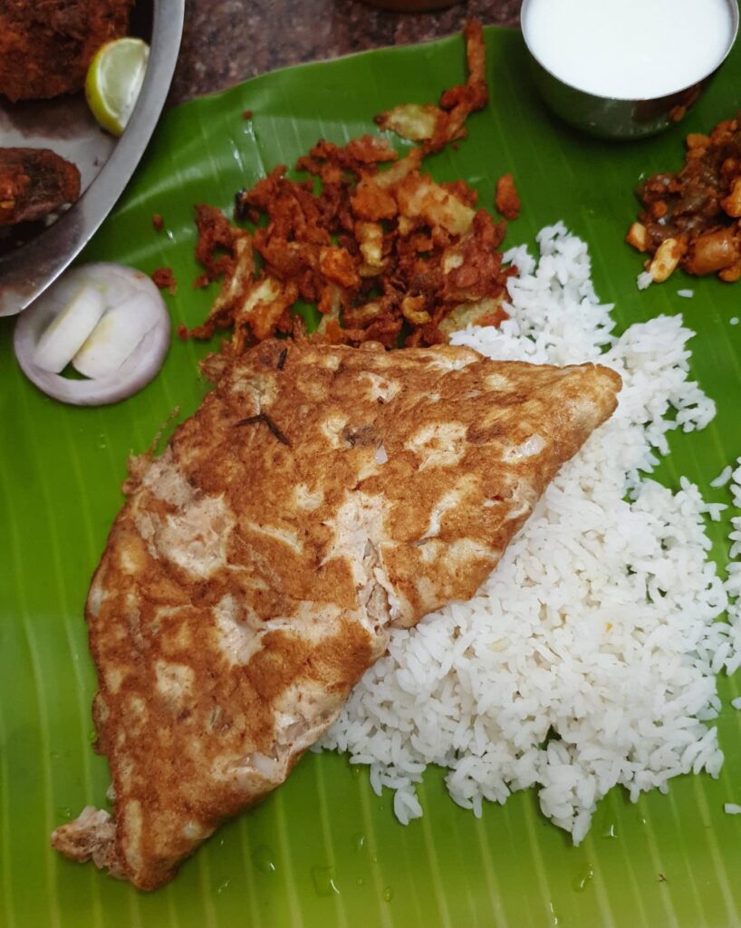Obvious choice of Meals (₹80) and it comes with the jing bang of a proper Andhra Meals – Podi, Pappu and the works. A meal isn’t complete without an Omelette (₹15). Fish Fry (₹80/pc) was a proper deep fried one. The Chicken Fry (₹70) was a semi gravy-ish one which tasted pretty good.