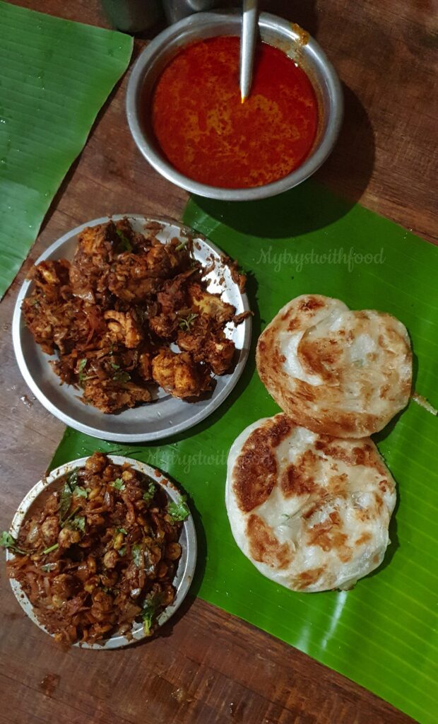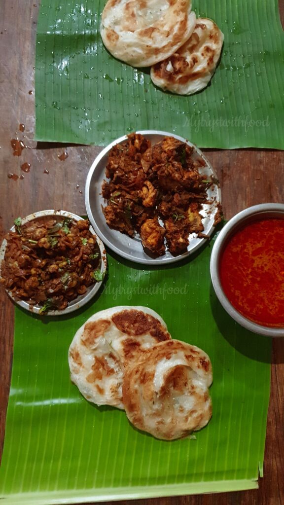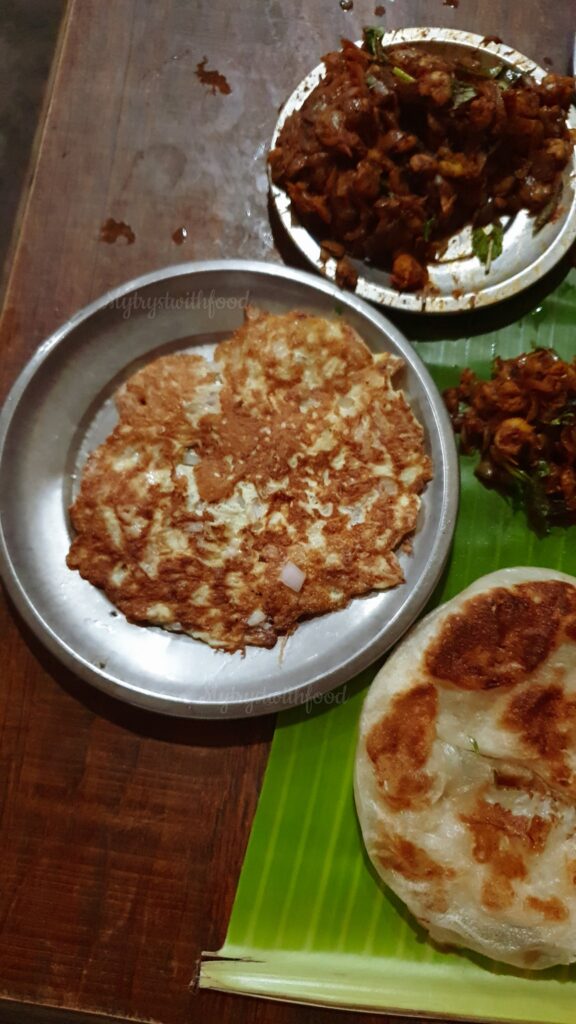 The Pandemic has taken a toll on every individual, be it emotional or financial or mental. Puthur Jayaram is no exception. Since, it’s located on a highway, the usual crowd isn’t seen. They’ve also stopped their signature meals. Their dinner menu is now an all-day menu. I’d called ahead before going and they were clear with their communication saying only Parottas, Prawns and Chicken Fry was available. I was okay with that. In fact, I was okay with having anything in that long stretch of nothing to eat kind of highway.