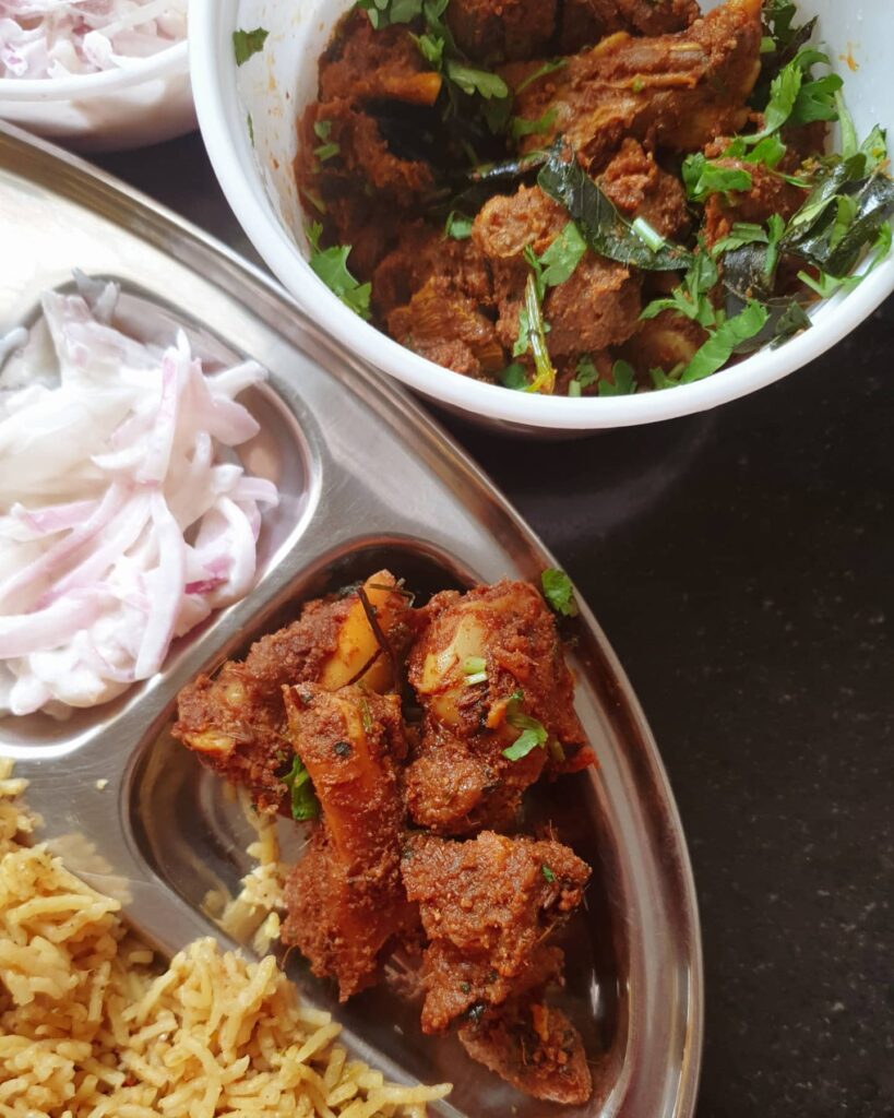 The brand has already been introduced to you all. So, this time it’s their Chicken Green Chilli Biryani (₹300) is what I mean to introduce to you. Biryanis from Andhra Deli ), as such is a thing of joy. But, this particular one stands out for me because I’m not a great fan of Chicken Biryani as such. And, this dish came to me as something that’ll shatter all my prejudice about Chicken Biryani in general. Don’t go by the mention of Green Chillies and think that this one will be super spicy. This one had subtle flavours which was spot on and the Egg Curry that comes with it is for sure a value add. Mutton Vepudu (₹450 serves 2) was part of the order during this instance and it was mind blowing in taste. I’m really really proud to have found Andhra Deli. I’m sure the association with them is going to last long.