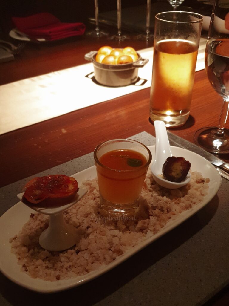 Nothing will ever give me immense pleasure as a food critic/writer than introducing a very promising Chef and his/her creations to you all. The bloggers table that I was a part of was possibly one of the best that I’ve attended. Of course, I don’t attend too many because I don’t believe in bloggers table. I believe in a Chef’s table where the Chef and their creations take center stage. Fresh ideas and execution of those ideas on a plate, is not as easy as it sounds. Chef Adhira carried the whole 8 Course on her (young) shoulders with so much ease and a bright smile on her face. The Pop-up has a Vegetarian and Non-Vegetarian option as well as a 5 course or 8 course option. If you are a wine drinker, I suggest you blindly go for the wine pairing option. Vegetarians, please don’t think this might not be for you. The Chef has made sure extra care has been taken to make sure Vegetarians have the same gastronomic experience as the Non-Vegetarians. Kudos to the Chef and she is someone to watch out for in the industry, for sure.The Chef’s table started off with OTR’s signature Focaccia and Chef Adhira’s signature Everything but the Bagel Butter. The liquid consistency of the Gazpacho might raise your eyebrows but I must add that the execution was brilliant that you may never want to go back to a Gazpacho with a thicker consistency. Bruschetta with Anchovies wasn’t as overpowering as I expected it to be. It was mild. The Miso Medjool which is a Blue Cheese Stuffed in a Medjool Date with a hint of Miso Butter was a master piece.The Autumn Salad is the Chef’s idea of trying to bring all 4 seasons in a plate. The warm Glazed Duck was perfect in texture. The Chef has played around with textures and temperatures with this one. So much of attention to detail has gone into this one. The next course Reduced Onion Tart is sure to convince you even before the food touches your palate. The smell of onions simmered in Uthukuli Butter will tempt you and leave you with a very pleasing after taste even after you consume it. Every spoonful of the Fish Tartare was a riot of flavours when I scooped everything together and had it. There was a lot happening in my brain cells. The heat from Red Pepper & Walnut Purée got balanced very well with the Black Pepper & Sour Cream Mousse. Gnocchi Rustico was Hungarian style baked dumplings in a slow cooked beef short rib ragout. The parmesan crumb crust added the necessary texture change.For the mains you get to choose between Leg of Lamb, Roast Chicken or Grilled Pork Belly but I decided to choose the Vegetarian counterpart Leek and Preseved Lemon Risotto. The explanation given by the Chef as well as the thought process behind this dish had made me curious. And, my curiosity was well fed. As my mind was processing how the slightly bitter taste from the preseved lemon was going to taste, I got totally taken back by the freshness of flavours every mouthful gave. The kale crisps were addictive.Perks of sitting in a Chef’s table is that I got to taste all the 3 dessert in the menu. It would be very difficult to chose anyone out of the 3 but the Milk and Honey seemed to be the crowd’s favorite. So, maybe you should order that. Why I would suggest to order that particular dessert is because of the usage of Burnt Honey for their Mousse, it certainly gives a different depth to the flavours. Ahh! I shouldn’t forget to mention that honey comb is one of the elements in that dessert. The other 2 desserts were Deconstructed S’mores and La Pêche – I loved them too.Après Dessert – the Cheese Plate was very carefully curated. Master stroke has to be the addition of Kashmiri Honey in the Cheese Platter. Pro tip from the Chef was to dip the cheese in honey and consume it if you find it to be overpowering. It’s a life hack for sure. The Liver Pâté is a must try if you are a Non-Vegetarian.The price for a 5 course Vegetarian menu is ₹2950+tax and the Non-Vegetarian menu is ₹3450+tax. The 8 course Vegetarian menu is priced at ₹3750+tax and Non-Vegetarian au 4250+tax. The wine pairing is for an additional cost of ₹950+tax. These prices are per person.Adding link to my Instagram Story Highlight here for those who may be interested to see more pictorial details:https://www.instagram.com/…/aGlnaGxpZ2h0OjE3ODg1MTgzNDU…